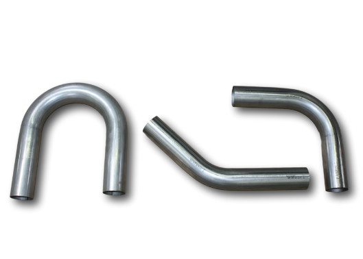 45 and 90 degree as well as 180 degree bends are bent from a customized length of tube. All bent on a CNC mandrel bender. item is available from 2" up to 3" OD tube. Please not mind of bending lubricant inside pipe, it is a special lubricant used in the bending process. It is environmentally friendly water-based lubricant.